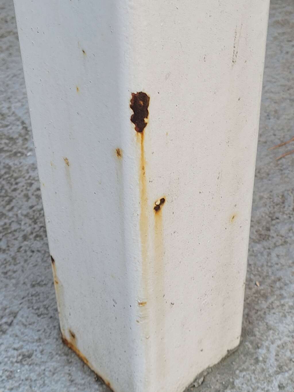 Ein Pfeiler in Bodennähe: Steinschläge zerstörten punktweise den Lack, hier setzt Korrosion ein.